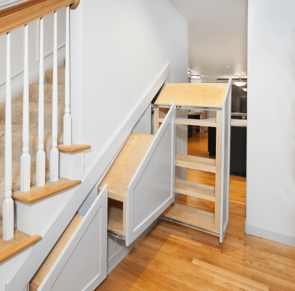 Chez AF Design, chaque espace a du potentiel. Nous concevons des agencements astucieux et élégants pour transformer vos dessous d’escalier en rangements sur mesure, esthétiques et fonctionnels.